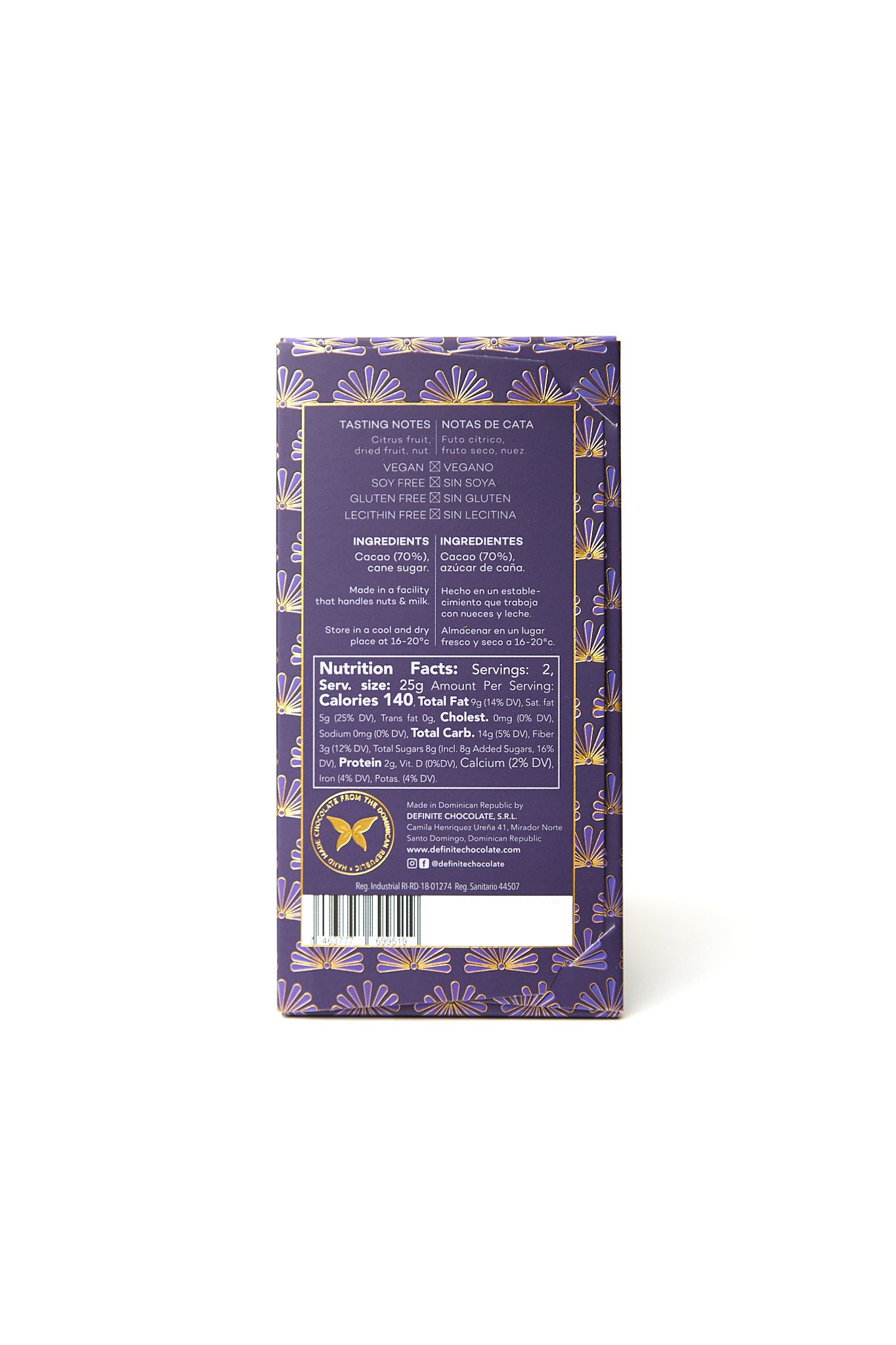This two-ingredient chocolate bar is made with cacao from Öko-Caribe, located in Pimentel in the Duarte province, the largest cacao growing region in the country. Öko-Caribe maintains a close relationship with over 150 small farmers in the region providing training and organic certification support.